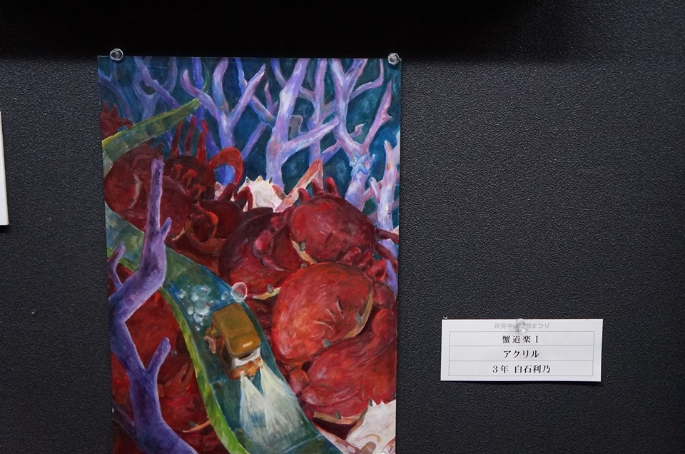 約2ヶ月半長期のクラブ作品展を開催 伏見中美衡部の全てを展観するという意味で「伏見中美術部 まつり』というタイトルになりました。同時に,春に卒業を控えた3年生ひとり一人の「3年間の步みと成果」を見ていただきます。