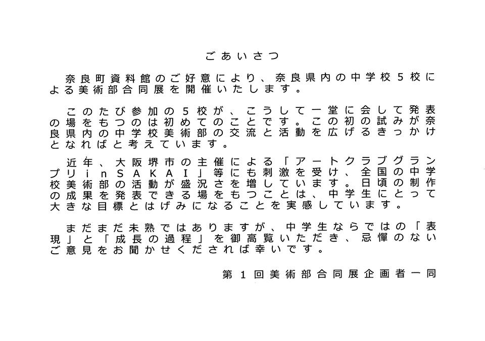 奈良県中学校区 美術部合同展 「伏見中、富雄中、登美ケ丘北中、香芝北中、御所中」 コラボ展示会