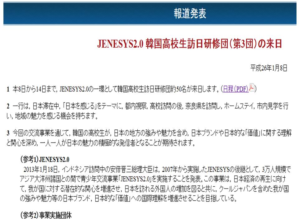 【21世紀東アジア青少年大交流計画JENESYS2.0】